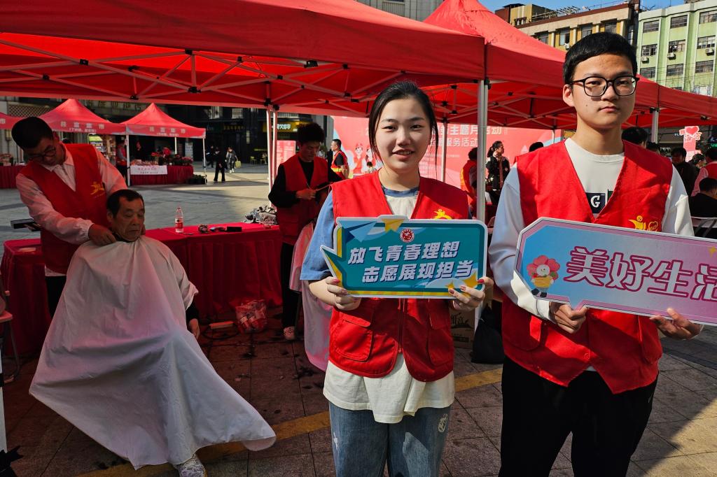 爱心义剪摊位同样受到了市民的热烈欢迎,前来理发的市民络绎不绝。王同学耐心介绍服务流程,递发号码券,解答疑问,市民有序排队,理发服务直击需求,现场温馨和谐。