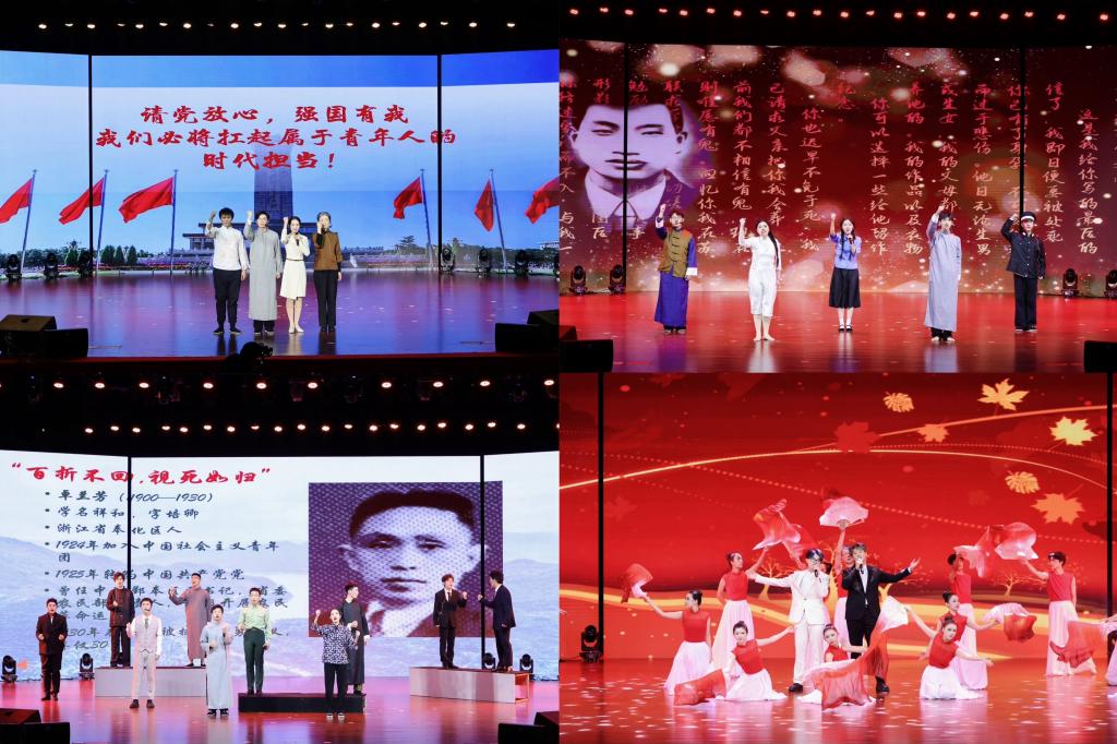 故事会分曙光、追寻、铭记、筑梦四个篇章,以多元化的节目形式,循序渐进展示革命火种在中国大地上不断发展壮大的历程。学院选送的微话剧《黎明》演绎了孙子坤这一革命烈士背后的故事,展现共产主义者坚定的信仰和英勇的斗争精神,灯光和音效的艺术处理使得观众仿佛置身那个腥风血雨的年代;情景朗诵《一生的等待》以邓稼先与其妻子许鹿希的故事为主线,讲述了两弹元勋邓稼先研发原子弹、氢弹的故事,将“等待”与“追寻”再现于舞台,演绎出不朽的英雄赞歌,展现了动人的家国情怀;集体朗诵《你是谁》采用明问实答的方式,以歌名正面提问,深情回答,将中国共产党的百年历程、建设现代化强国的宏伟蓝图和人民群众的获得感深刻关联,歌颂中国共产党的百年信仰,赞美中国共产党带领人民所取得的伟大成就。还有浙江革命烈士纪念馆、中国共产党杭州历史馆、杭州市拱墅区湖墅街道人大工委及宁波幼师高专等多家单位带来的《那年,我们26岁》《三个人,三座城》《纸短情长 百年家书》等红色节目,接连呈现一个个鲜活的英勇革命志士形象,深情传递对祖国热爱与自豪的情感,引领着观众穿越时空,走进那段波澜壮阔的岁月。