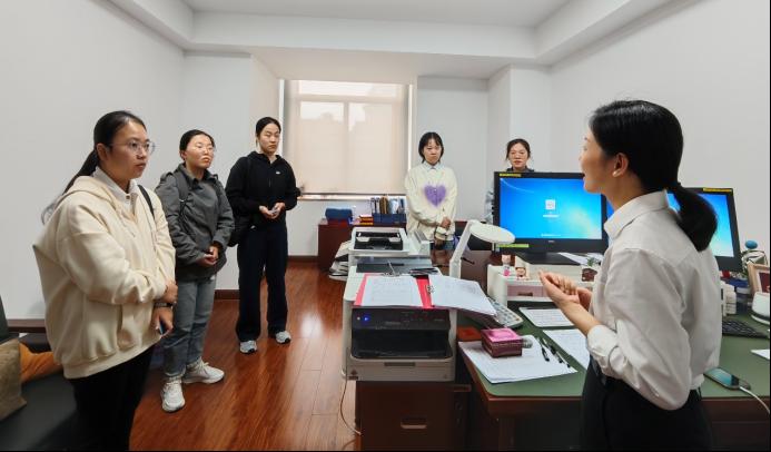 海宁市人民法院政治部宋杰主任和张凤妹副主任热情地接待了师生一行。宋主任表达了对我院支持海宁法院工作的感谢,并表示岗位实习一方面能让学生沉浸式参与司法辅助人员日常工作,切实有效提升司法实务能力,另一方面也有助于缓解法院案多人少的压力,可谓是互利共赢。张主任向实习生们介绍了实习期间的工作安排和纪律要求。五位实习生将被分配到行政庭、民三庭、立案庭和长安法庭进行岗位实习。