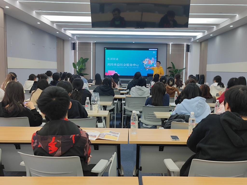 座谈交流会还邀请到入驻在该社工站的一家社会组织——东湖街道共同养益社会服务中心的负责人夏老师给同学们进行了社区儿童成长相关的主题分享,生动有趣的授课方式让同学们从社会组织的角度了解到居民需求如何回应、问题如何解决以及如何调动社区资源等实践经验。