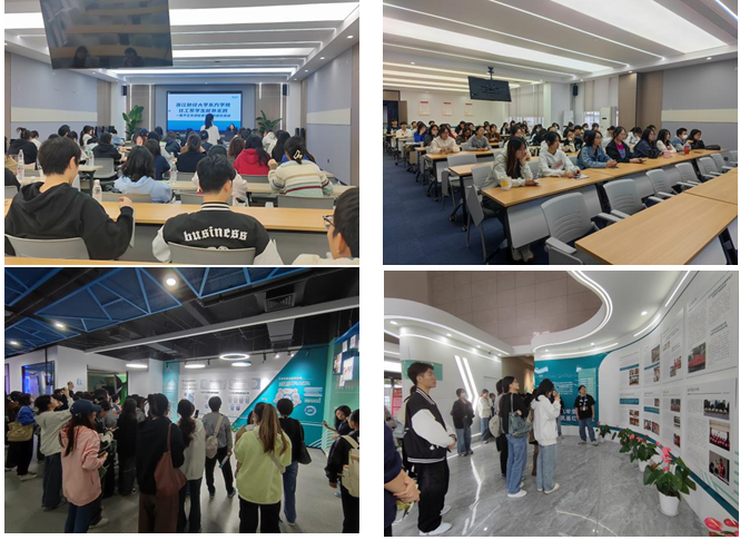 同学们在进行安全教育学习后,在老师的带领下集中乘坐大巴车前往杭州市临平区东湖街道社会工作站。实践活动内容丰富,形式多样,社工站负责人潘兆达带领同学们参观了社工站的阵地建设,包括社工站的党建中心、共享空间、宣传栏与五社联动实践平台等。在随后的交流座谈会上,社工站的工作人员更是详细介绍了东湖街道社工站的基本情况、特色亮点以及日常工作内容,还与同学们分享了与在实际工作中遇到的一些实践案例,让同学们对基层社会工作有了更深的内容感知。