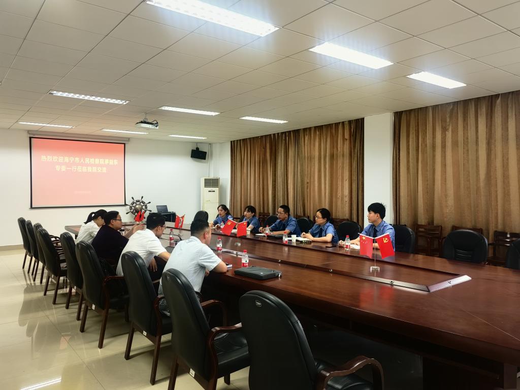 8月2日下午,海宁市人民检察院茅益东专委一行5人来我院调研交流。我院院长邵培樟、副院长韩娟、法律系副主任周立波及办公室主任柳迪参加座谈交流。
