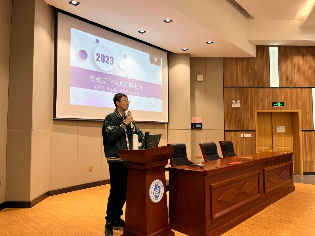 为进一步加深社会工作专业新生对专业、职业、行业的认知,5月11日上午,社会工作系特别邀请浙江理工大学法政学院社会工作系副主任朱麟飞老师为同学们作题为“社会工作与我们的生活”的专业教育讲座。22级全体新生参加讲座,社会工作系主任舒振宇老师主持讲座,学生东方社工协会负责讲座现场的管理和安排。
