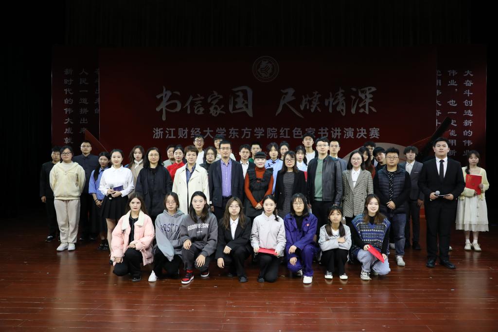 11月15日下午,由我院马克思主义学院、组织宣传部举办的以“书信家国,尺牍情深”为主题的红色家书讲演活动决赛在影剧院顺利举行。浙江革命烈士纪念馆副馆长万晓青,学院党委副书记林香娥,以及党院办、组织宣传部、教务管理部、学生工作部、团委、法政学院等相关负责人出席本次活动,全院共300余名学生参与本次活动。