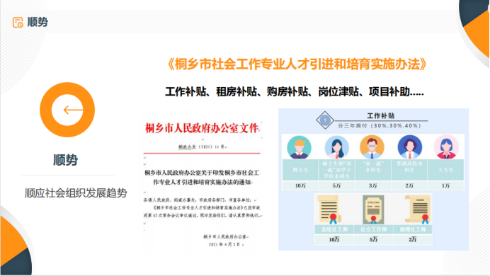 分享伊始,董女士首先结合自身工作经历,对社会服务领域创业的定位进行深入浅出的讲解,同时给同学们介绍了社会服务领域、机构类型及成立条件;之后,董女士以嘉兴阳光家庭社工事务所为例给同学们介绍创业实例,并对创业需具备的能力和当下的趋势进行分析阐述,鼓励同学们顺时顺势根据自身情况进行尝试和选择。分享结束后,董女士还与同学们进行了热烈的线上互动。