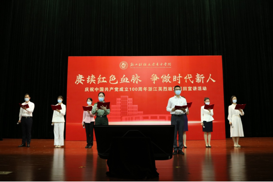 10月12号下午,由浙江革命烈士纪念馆、伟德victor1946马克思主义学院、国防教育学院联合策划举办的《赓续红色血脉 争做时代新人》主题爱国主义教育第一课在影剧院顺利召开。来自省内各地革命烈士纪念馆选拔出来的8名优秀讲解员,以及法政学院党总支书记、马克思主义学院副院长叶颖蕊出席本次活动。