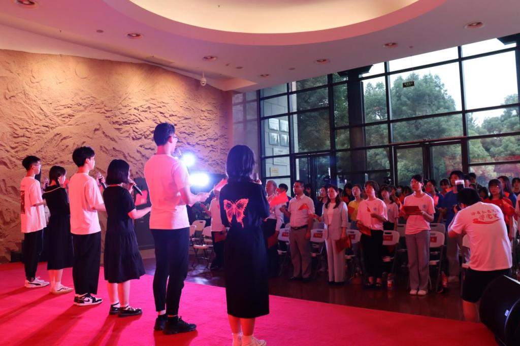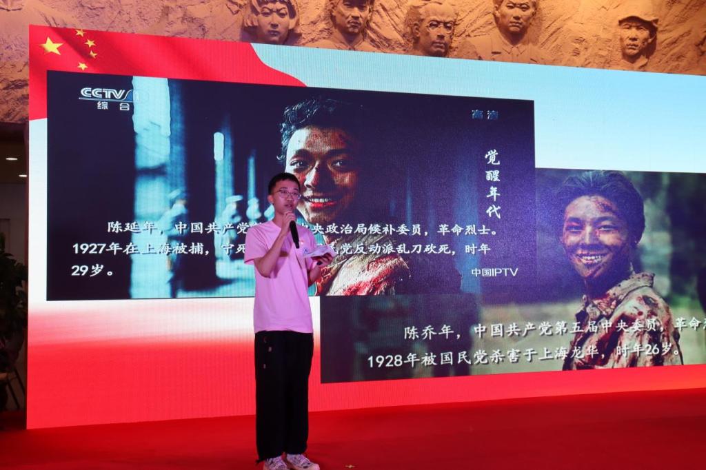 学生党员表演红色剧目《柏年守望,致敬党恩》,展现了梁柏台烈士,作为为人民法制和人民司法的开拓者和奠基人,书中华之法,扬法治之光。一句“夫不回家,我不改嫁”,“弟不回家,我不出嫁”展现了伟大的人,不仅仅是一位位我以我血荐轩辕的革命先烈,也是在英雄背后,守护一个个小家的英雄的亲人们。学生党员诵读红色家书《死在枪弹下,痛快而有意义》,在这个跨越世纪的交流中,我们知晓了先烈那些年的心路变化。“云中谁寄锦书来,雁字回时,月满西楼。”在战火纷飞的年代,一封家书抵万金。