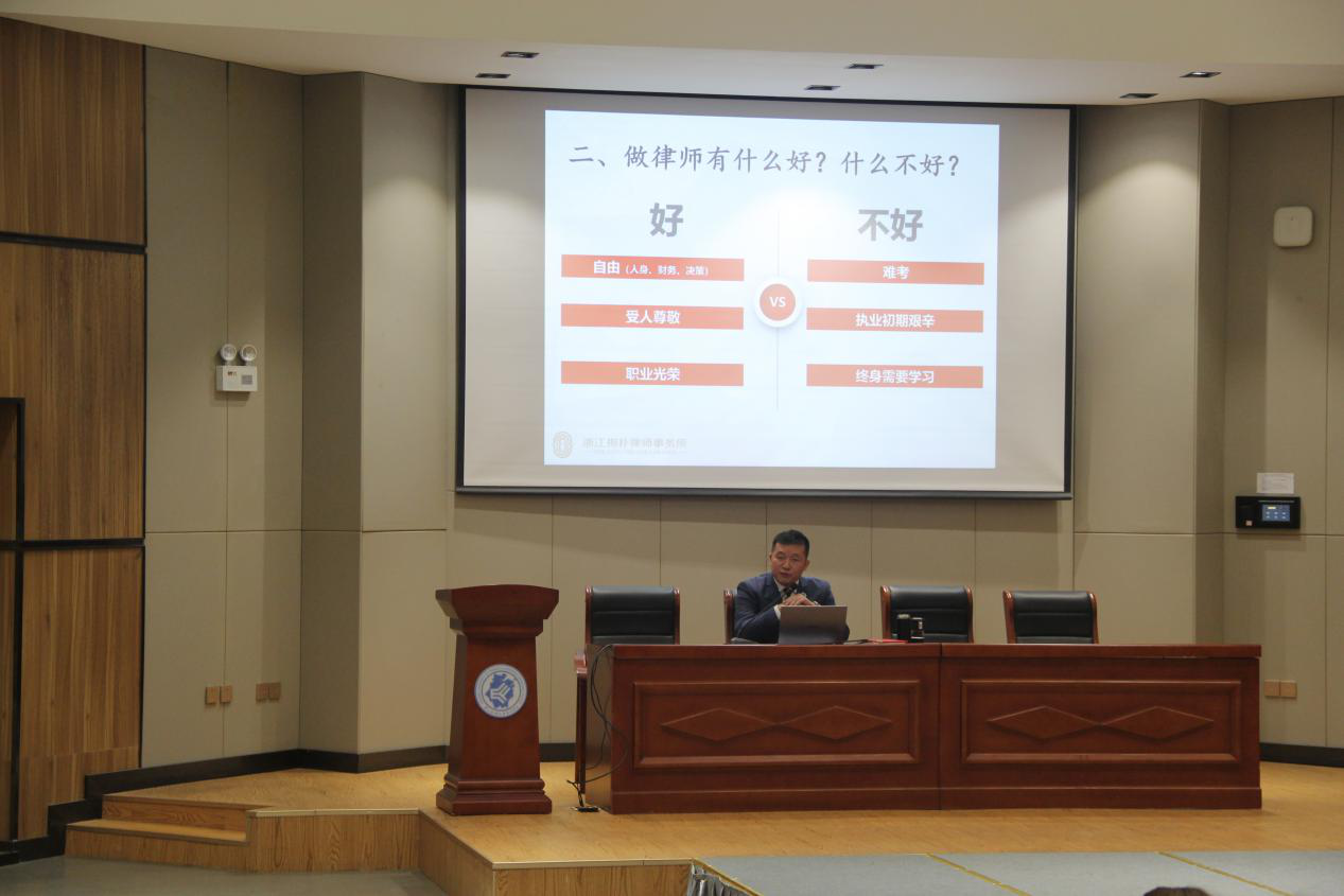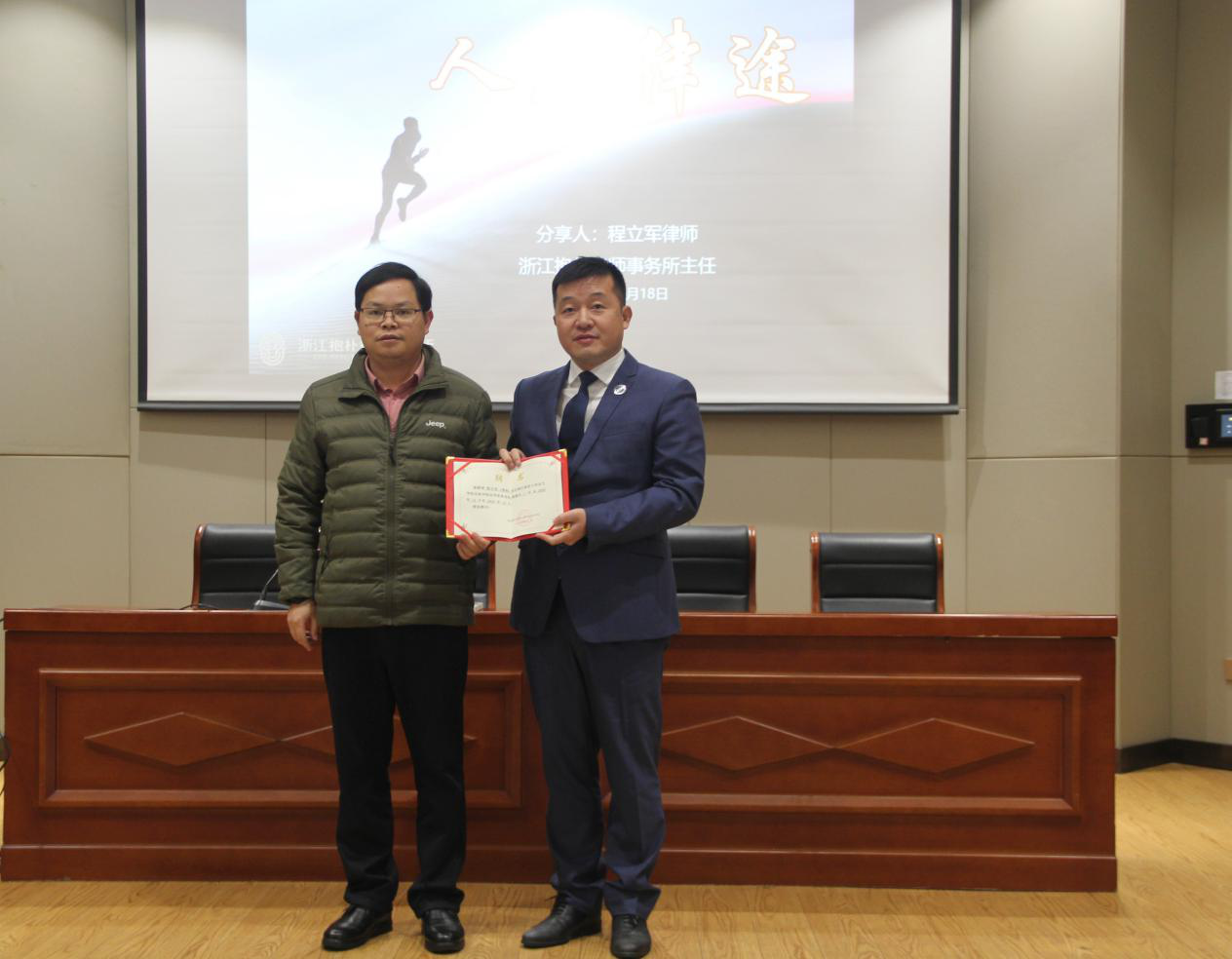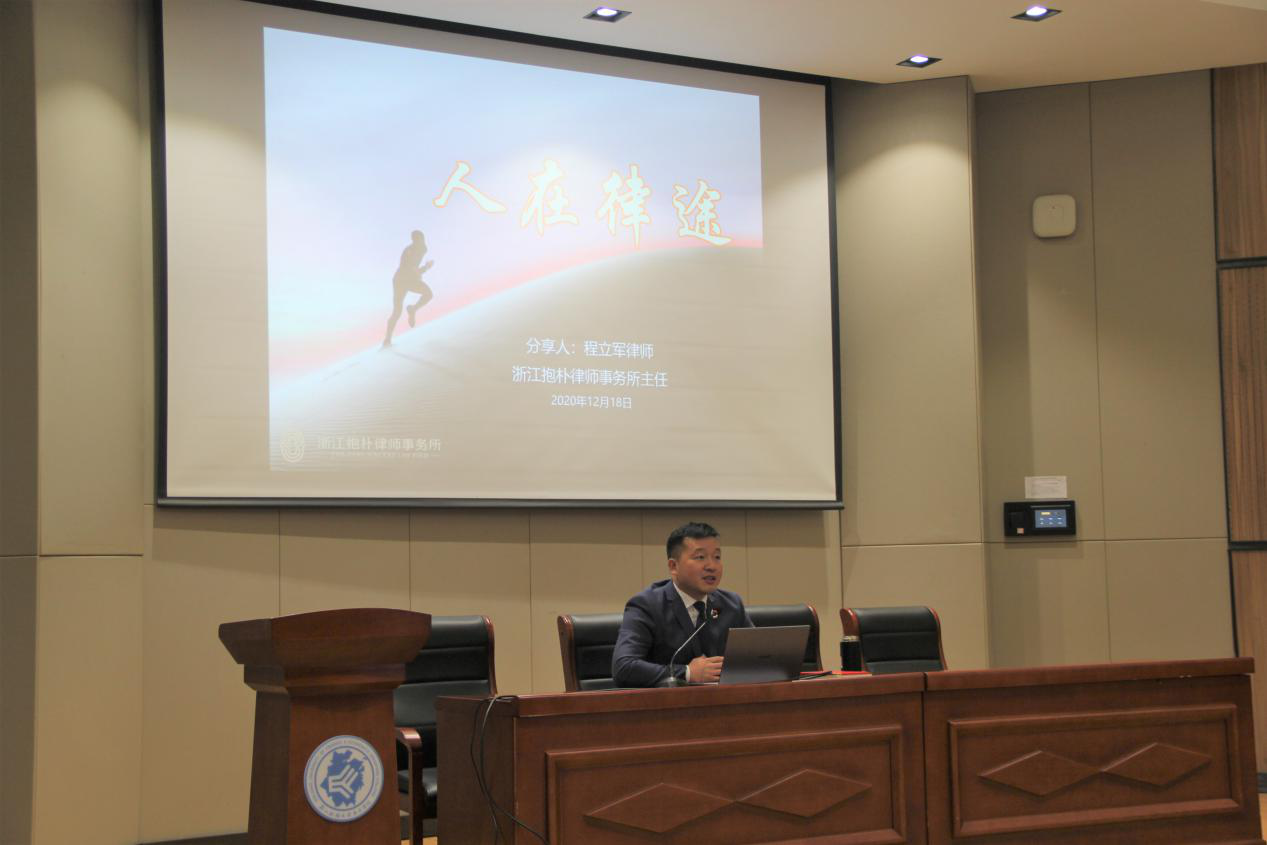 为了解决新生专业学习中的困惑,加深新生对于专业的理解以及做好新生的专业规划。12月18日,法政学院于5J-101举行2020级新生专业教育系列讲座第二场,特别邀请到了担任浙江抱朴律师事务所主任的程立军律师,为法政学院法学专业新生讲解了“从法学专业到律师职业的转变”。本次活动出席由法政学院院长邵培樟教授,20级法学专业全体新生参与。由法政学院副院长韩娟老师主持本次讲座。