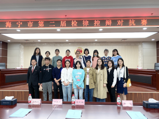 为认真贯彻落实司法改革的要求,促进海宁检律业务交流,全面提升刑事控辩能力和水平,构筑新型检律关系。2020年10月15日下午1:00,由海宁市人民检察院、海宁市司法局、嘉兴市律师协会海宁分会联合举办的“海宁市第二届检律控辩对抗赛”在海宁市人民检察院顺利开展,来自市检察院和嘉兴市律师协会海宁分会的两支队伍共12名选手参与,法政学院院长邵培樟老师受邀担任此次大赛评委,副院长韩娟老师和20名学生代表观看比赛。