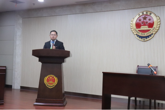 活动伊始,海宁市人民检察院副检察长金茂松作开幕致辞,肯定了举办检律控辩对抗赛的重要意义,为检、律、校多方交流,展现法律理论知识、语言表达、逻辑思维和庭审应变能力提供平台,擦亮海宁法律职业共同体名片,探寻共同法律价值和法治精神的真谛。
