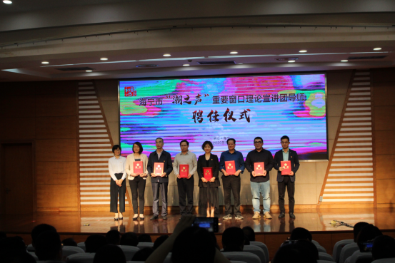 9月23日,海宁市“潮之声”重要窗口理论宣讲团授旗仪式暨“南湖初心讲堂”青年宣讲员学习第一课在海宁市委党校召开,并举行了宣讲团导师受聘仪式。我院法政学院邵培樟教授、叶颖蕊副教授分别受聘社会治理与党建宣讲团导师,此次宣讲团致力于打造重要窗口理论宣讲的浙江样板、全国标杆。