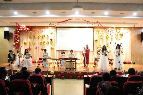 晚会在大学生艺术团器乐组带来的合奏《阿拉木汗》中拉开序幕,铮铮琴声回首昨日,冬雪压枝梅花绽;袅袅笛音且待明天,春风拂面百花开。
