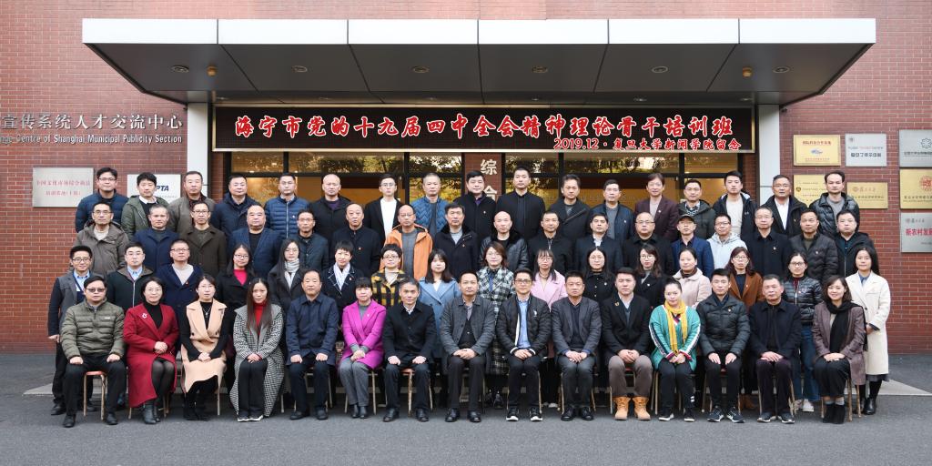 12月9日--11日,我院马克思主义学院院长邵培樟、马克思主义学院兼任教师王晓玲、郑明武、王璐燕、高永志等受中共海宁市委宣传部邀请在复旦大学上海市宣传系统人才交流中心参加海宁市党的十九届四中全会精神理论骨干培训班,这是我院马克思主义学院坚持校地合作、共建共享理念的又一生动体现。中共海宁市委常委、宣传部长曹毅,我院马克思主义学院副院长、中共海宁市委宣传部副部长张国华,海宁市各机关单位、乡镇街道主要负责人近60人参加此次培训。