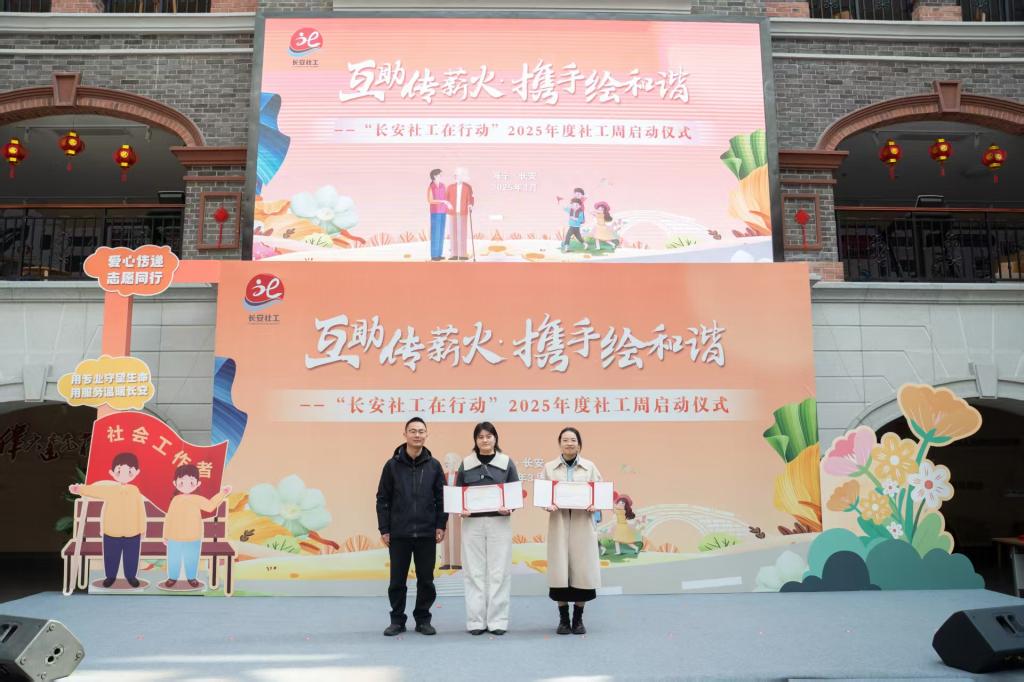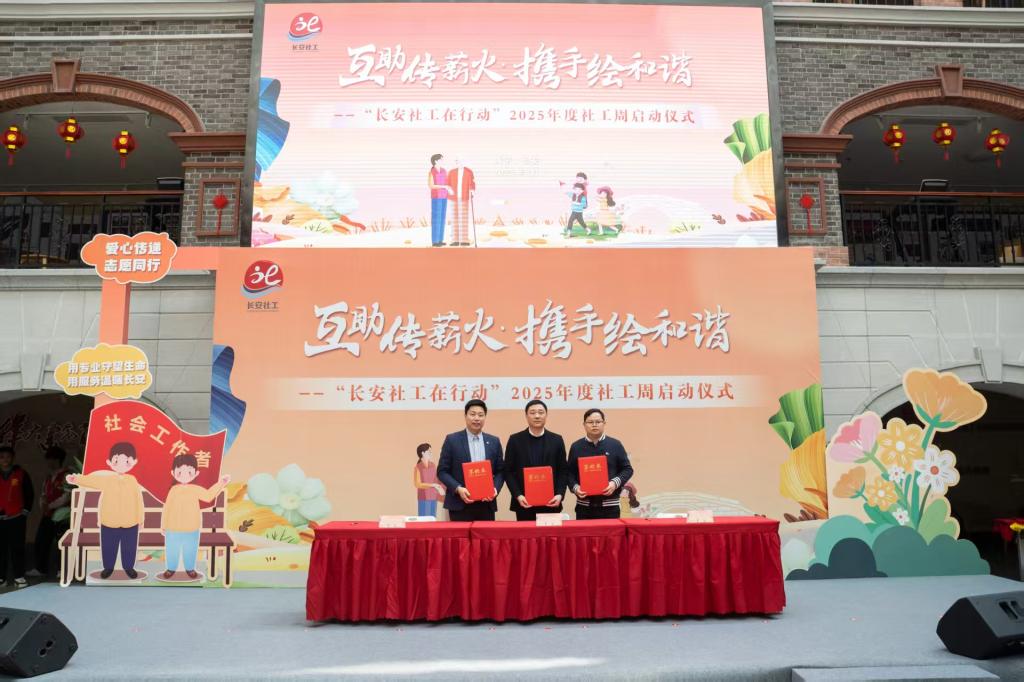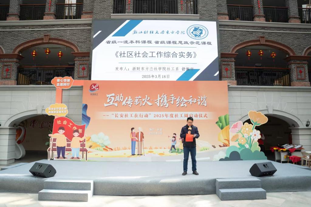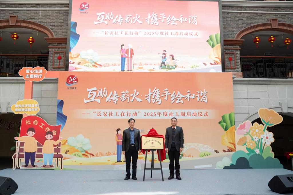 3月18日,海宁市长安镇(高新区)2025年度社工周启动仪式在长安镇党群服务中心举行,东方学院副院长张伟飚、法社学院院长邵培樟、社会工作系主任舒振宇及社会工作专业师生代表40余人受邀参加。仪式上,举行了校地双方共建的长安镇社会工作人才实践基地揭牌、社会工作人才实践计划合作协议签署、《社区社会工作综合实务》课程与实践岗位发布以及长安镇“青蓝计划”导师结对等活动。