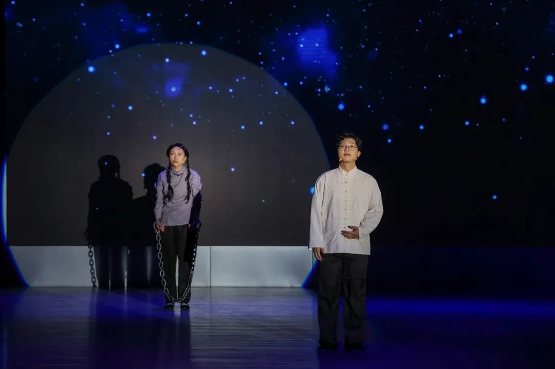 舞台上,情景朗诵《一生的等待》将观众带入了另一个感人至深的故事中。在荒芜的戈壁滩上,风沙漫天,条件艰苦,无数像邓稼先、许鹿希一样的科研工作者隐姓埋名,将青春和热血献给了“两弹一星”事业。二十八年的漫长等待,他们用执着坚守诠释着对国家的无限忠诚,成为了后世敬仰的精神坐标。