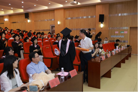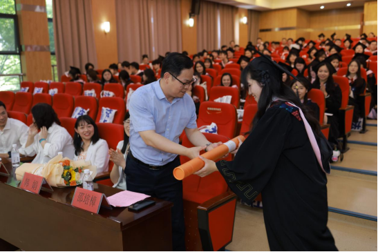 法社学院党总支书记叶颖蕊、科技合作部负责人韩娟老师先后为“省级优秀毕业生”“校级优秀毕业生”颁奖,红底证书里封存的是千余个日夜的晨读暮省。那些在法理星河里打捞正义微光、在社工实践中播撒温暖的身影,此刻化作会场最亮的星群。