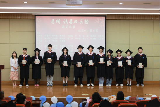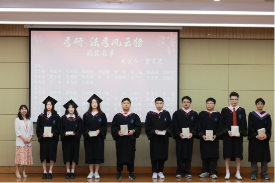 法社学院副院长梁美英颁发的“考研法考风云榜”荣誉,见证着学子跨越智慧与毅力的双重高峰。当主持人念出获奖名单,台下掌声里涌动的是对“凌晨四点的图书馆灯光”“千万次法条背诵”的集体致敬——每一枚证书都是用坚持熔铸的勋章。