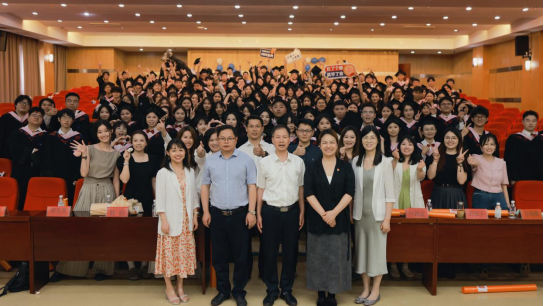 当歌声落定,法社学院院长邵培樟以自身求学、治学与育人数十载的成长经历,向全体毕业生发表情真意切的临别寄语。他以“梦想—行动”“人物—人”“个体—家国”三组关键词为脉络,回顾了自己从青年学子到教育者的蜕变历程,勉励学生"在规则中守护底线,在变革中勇敢创新",更强调"法社人的笔尖应有墨香,更需流淌人文关怀";叮嘱毕业生"既要仰望星空,更要俯身倾听大地的心跳"。现场掌声雷动,不少学子动容,这份融合个人感悟与时代期许的嘱托,成为毕业生们最珍贵的"最后一课"。