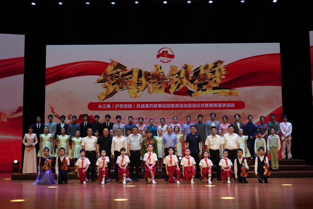 为纪念中国人民抗日战争暨世界反法西斯战争胜利80周年,6月19日,我院节目《我们不会忘记》受邀参演在杭州举行的由浙江省退役军人事务厅、浙江科技大学主办的“铜墙铁壁——长三角(沪苏浙皖)抗战英烈故事巡回宣讲活动”启动仪式暨首场宣讲活动”。浙江省退役军人事务厅、浙江省委宣传部、浙江省直机关工委、浙江省委党史和文献研究室、共青团浙江省委、浙江省军区有关领导,上海市、江苏省、安徽省退役军人事务厅分管领导参加活动。抗战老战士、抗战英烈家属代表、在杭高校学生等共计800余人共同聆听宣讲。我院马克思主义学院党总支书记叶颖蕊受邀观演。