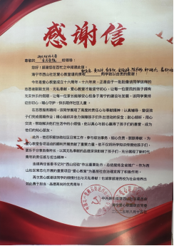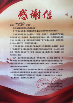 近日,学院社工系教师石卷苗带领8名学生(郭奕含、黄子柠、李佳欣、金冠婷、陈书扬、郭鸿杰、葛科洒、鲁涵宇)于暑期赴海宁市砚石街道西山社区参与“爱心教室”志愿服务活动,圆满完成志愿服务任务,并获得社区高度认可。西山社区特向学院发来感谢信,对我院学子的无私奉献与扎实付出表示诚挚感谢。