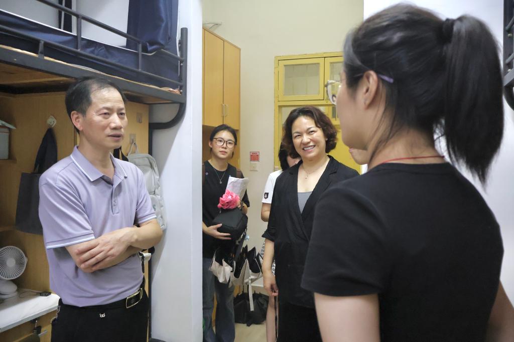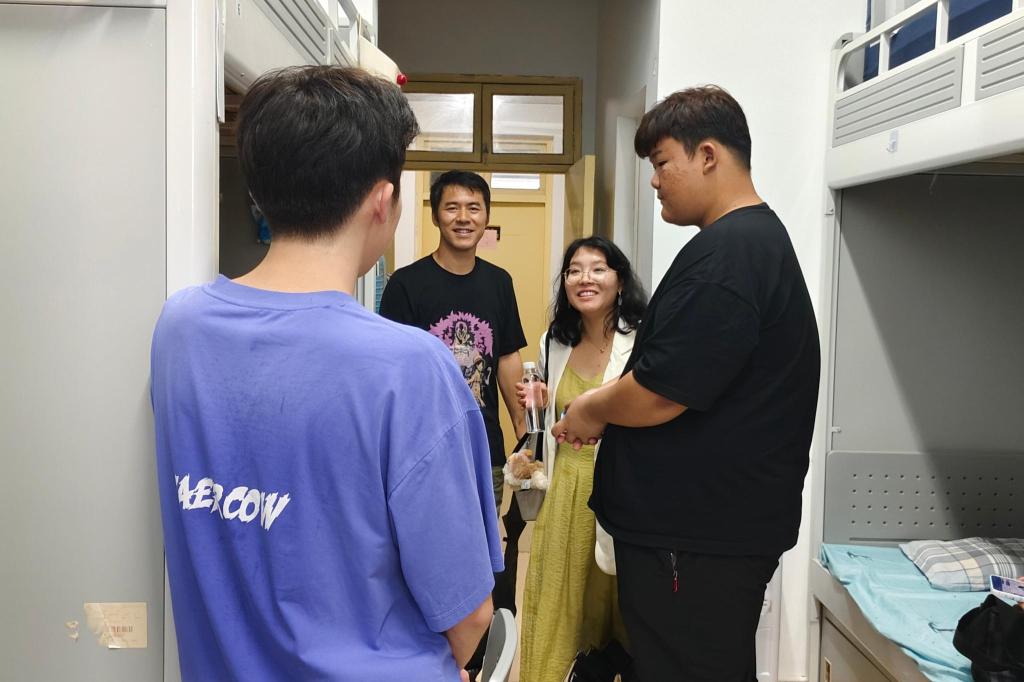 下午,东方学院副院长张伟飚带队,学院领导、系主任与辅导员组成的走访小组,带着关切的心意,走进一间间新生寝室。老师们细细查看住宿环境,轻声询问新生是否适应集体生活,是否有生活难题亟待解决;专业老师们还结合学科特色,与新生浅谈大学的专业课程学习,鼓励他们在钻研学业的同时,积极参与校园活动,丰富大学生活;辅导员们则语重心长地叮嘱新生,要尽快调整状态,融入集体,遇到困惑及时向老师、同学求助,在法社这个大家庭里安心学习、快乐成长。一句句关切的问候,一声声真诚的鼓励,如秋日暖阳般,驱散了新生在陌生环境中的不安,让宿舍里满是家的温馨。