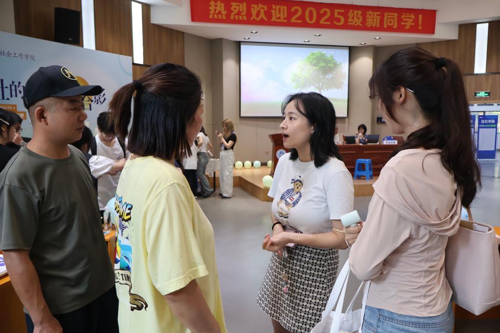 学院在报到区域特设专业咨询点,法学与社会工作专业的老师们,面对新生与家长关于专业课程设置、就业方向、实践平台等方面的疑问,用专业的解读与耐心的引导,娓娓道来,为新生拨开专业认知的迷雾。同时,东门展厅内还设置了学院简介、法学专业介绍、社会工作专业介绍的展架,进一步帮助新生和家长了解学院及专业情况。