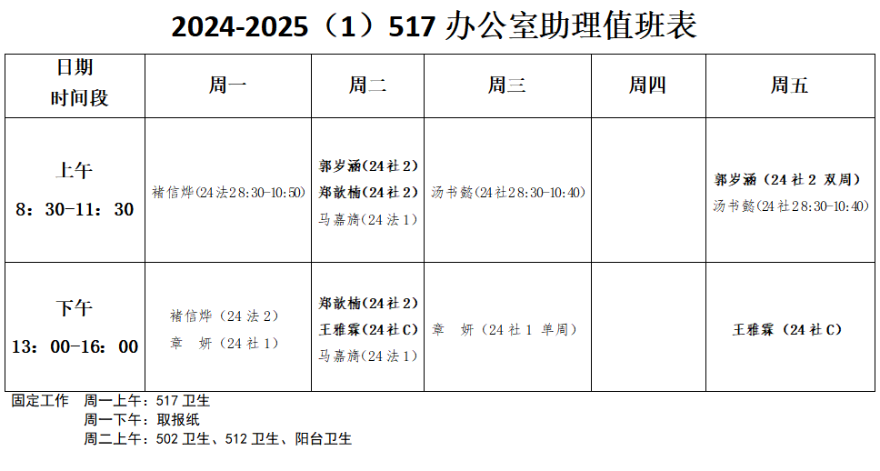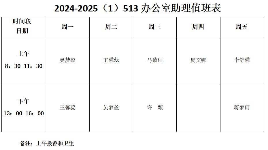 2024-2025(1)办公室助理值班表