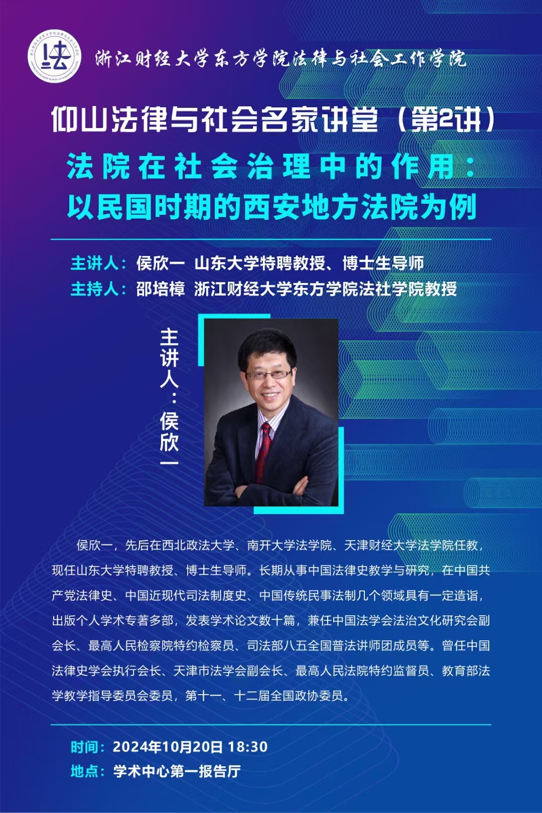 仰山法律与社会名家讲堂(第2讲)----法院在社会治理中的作用:以民国西安地方法院为例