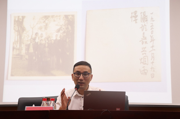 5月25日下午13:30,由我院马克思主义学院承办的思政大讲堂于学术二号报告厅举行。我院马克思主义学院邀请到浙江省档案文献收藏研究会副秘书长、浙江省钱塘江涌潮研究会会员方林峰做题为“建党百年 初心如磐——南湖红船老照片的故事”的专题讲座。本次讲座由法政学院马羚老师主持,东方学院师生等约300人共同参与。