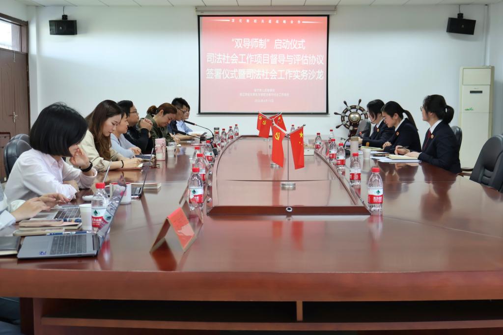 学院社会工作系8名专任教师与海宁市人民检察院8资深检察官一一结对,形成社会工作专业的“校内专业导师+社会实务导师”双导师制,共同参与社会工作专业学生的实习实践与毕业论文指导。