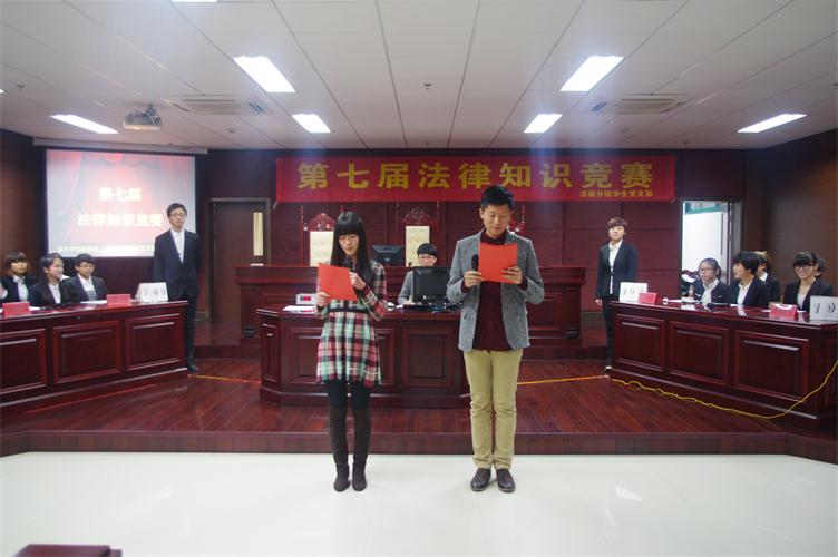2013年12月8日,伟德victor1946发政分院法学会第七届法律知识竞赛决赛在模拟法庭成功举行。法政分院团总支书记姚亦亚老师,财税分院团总支副书记张娃庆老师,法学会指导老师周立波老师和韩娟老师应邀出席了本次比赛。
