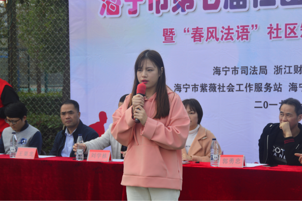 在青春律动的开场街舞结束后,叶颖蕊老师发表了讲话。叶老师首先代表举办单位对参加开幕式的各位领导、教练员、裁判员、运动员以及支持本次趣味运动会的朋友们表示热烈欢迎。随后,她又指出本次社区矫正趣味运动会是为了帮助社区矫正人员树立健康自信的积极心态,更好地融入社会,切实矫正他们的不良心理和行为,提高社区矫正对象的团队意识和合作精神,在矫正学员中掀起健身活动热潮。本次运动会不仅架起了社矫人员与志愿者相互交流的友谊桥梁,还拉近彼此间距离。对于下一阶段工作的开展起到了积极的作用。