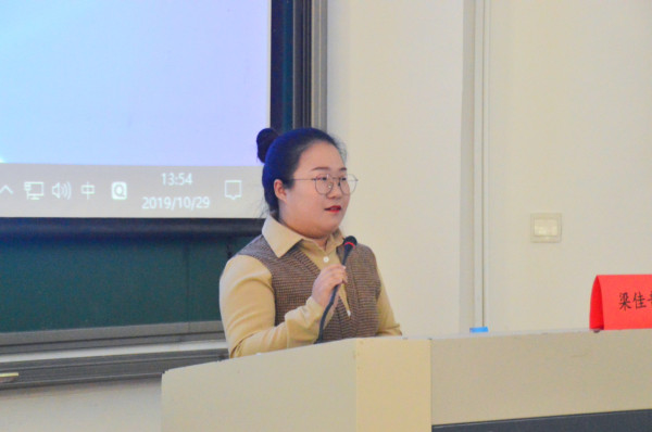 紧接着,梁佳音同学也跟大家分享了自己的故事。她指出:沟通、创新、学习是学生干部最基本的素养。梁佳音同学着重强调了尊重一词。对询问自己问题同学保持耐心,对部门伙伴的工作成果认真对待,与学长学姐、老师相处时不忘礼貌。只有将尊重贯穿于日常工作生活中,才能成为一名合格的学生干部。