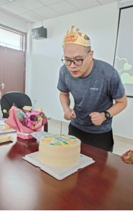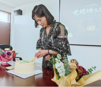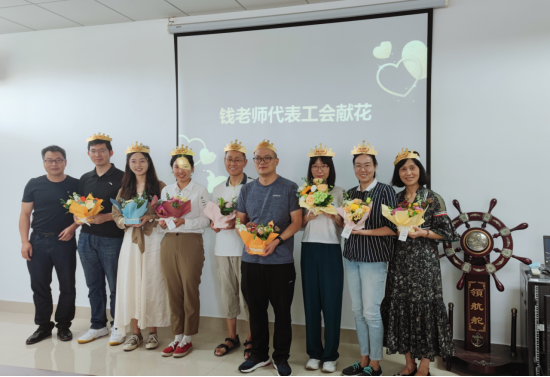 接下来,寿星们在大家的祝福下,许下美好心愿,工会主席钱老师代表工会献花,邵老师代表学院送上生日祝福,生日礼物会在生日当月快递到家,大家合影留念。同时抽取了2份幸运礼物,钱璐、张莹老师喜得好运。