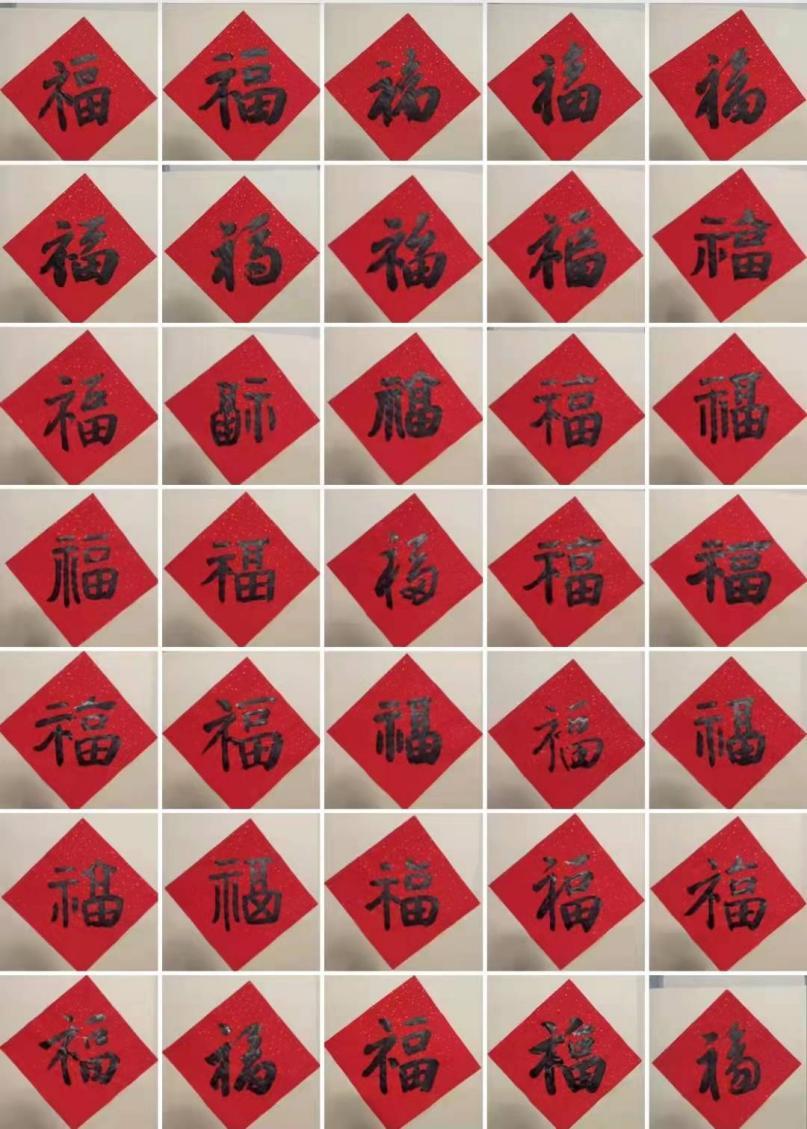 图 2 周立波老师书写的35张“福”字