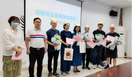 914,法政学院举办8-10集体生日会暨蔡佑民老师光荣退休仪式,全体教职工一起切蛋糕、吹蜡烛、许心愿,一张张温馨欢乐的笑脸,展现了学院的凝聚力,活动现场其乐融融、欢声笑语。