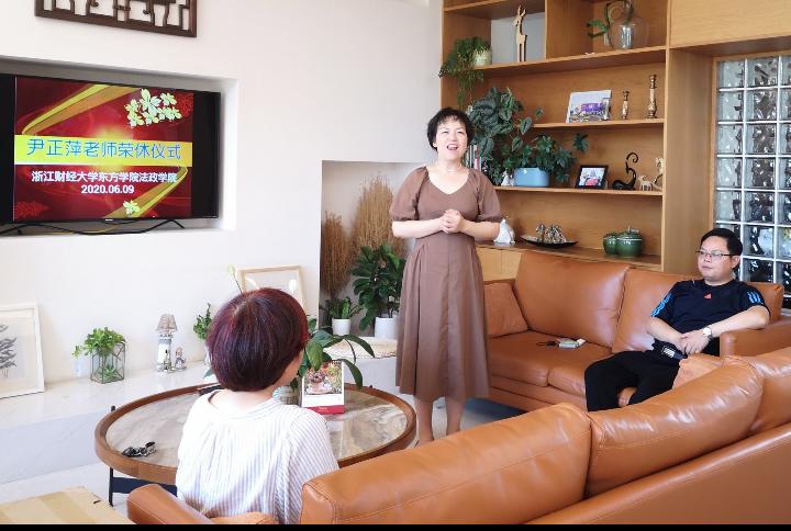 仪式伊始,大家集体观看视频,一起来回忆尹老师在法政与大家一起看过的景、一起走过的路、一起记录下的镜头。视频中,各位老师也纷纷献上对尹老师的祝福。接着,邵培樟院长代表学院向尹老师献上光荣退休水晶书,并表达了对尹老师的感谢,也希望尹老师退休后能继续关心和支持学院工作。