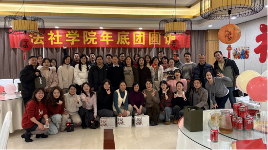 当冬日的阳光洒满校园,新年的脚步悄然而至,我们法社学院这个大家庭,也迎来了一年中最温暖的相聚。2026年1月21日,我们暂时放下繁忙的工作,43位教职工齐聚学术中心丹桂厅,共同举办了一场年末团圆活动。这不仅是一次简单的聚餐,更是一场充满欢声笑语、暖意融融的“家宴”。
