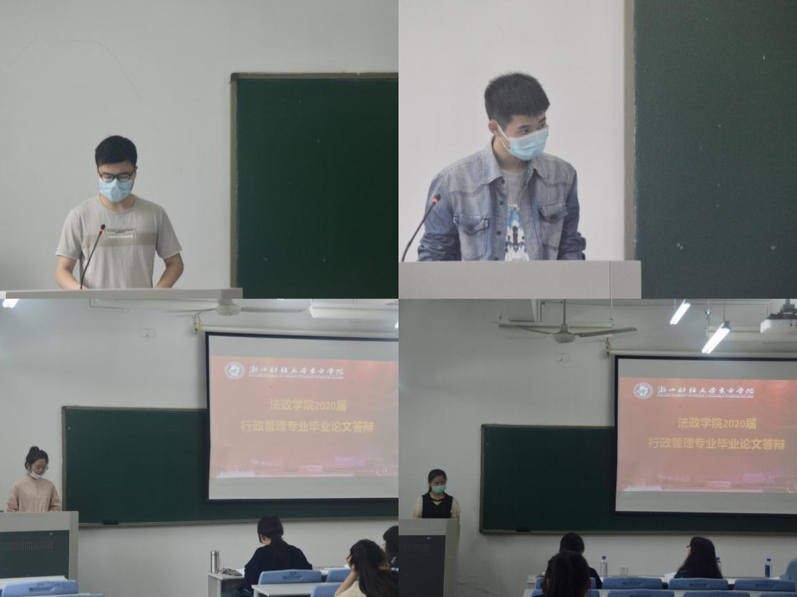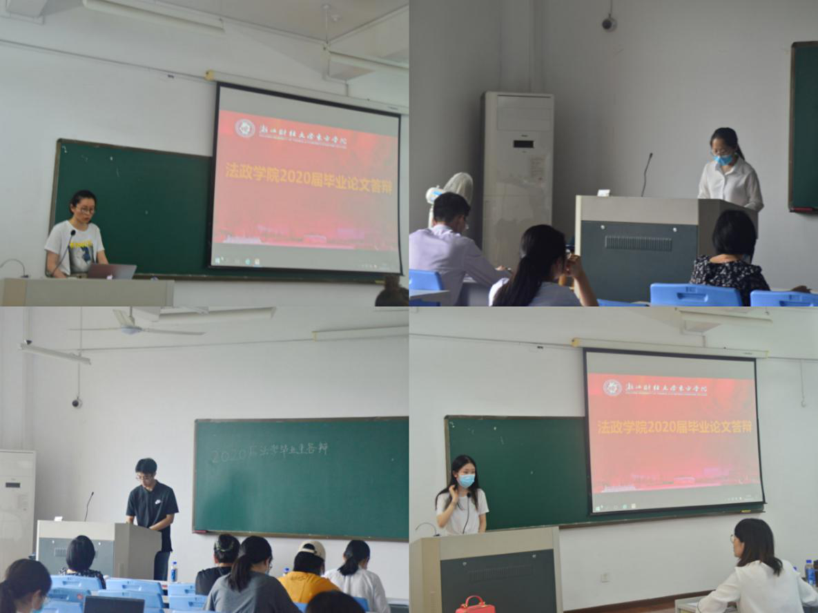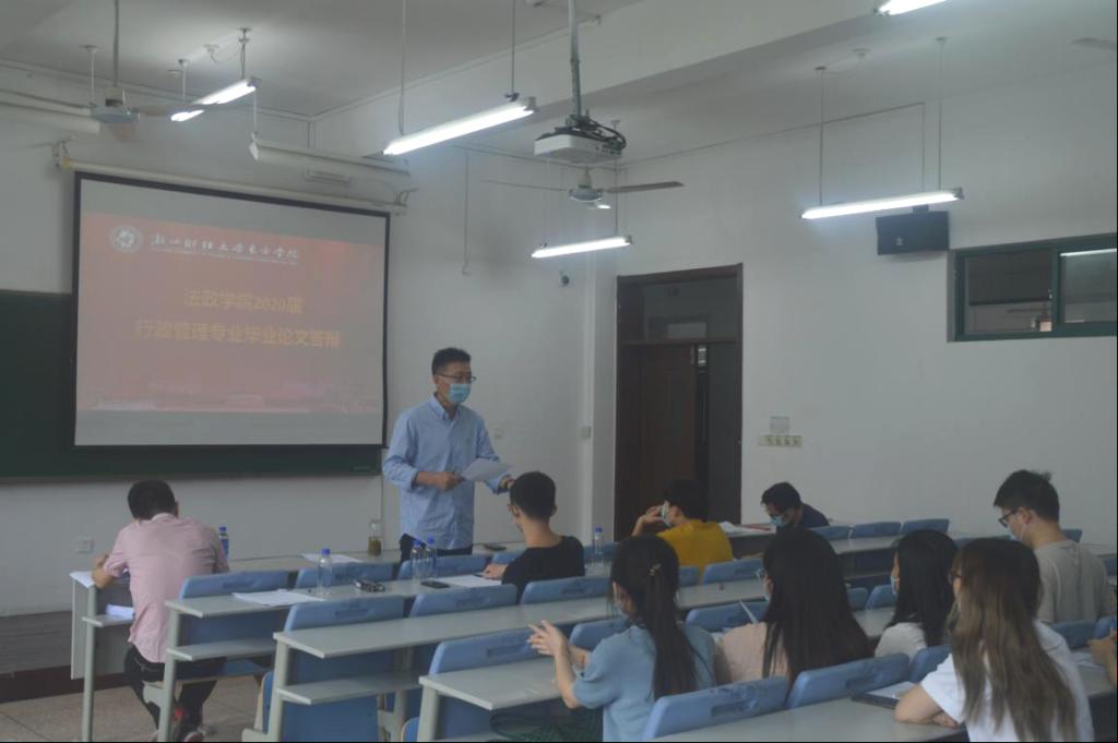 毕业论文答辩是检验大学生学习成果的重要环节,也是学生们展现自己的智慧与口才的时刻。2020年5月16日-17日,法政学院2020届法学专业和行政管理专业本科毕业生论文答辩在五教分组举行,本次答辩邀请了浙江财经大学法学院王俊老师、浙江财经大学公共管理学院钟伟军教授、操世元副教授、杭州师范大学濮敏雅老师参加,校内专业导师也参与了答辩工作。